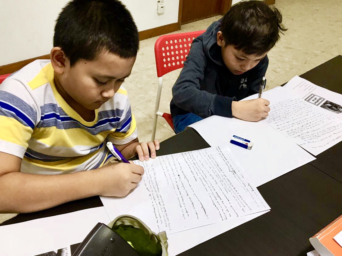Process of creative writing, maintain a structure whilst the mind runs free and creative. Students seen here coming up with ideas and paring it down to make a smooth flowing sensible composition